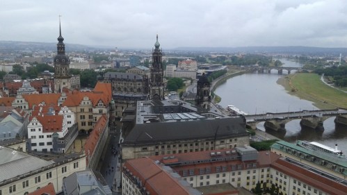 Visiting Germany this summer, I spent two days in Dresden. And although it was raining cats and dogs the whole time, I was impressed by the beautiful buildings, all rebuilt or restored after the war or even after Germany’s reunification. The Semperoper was closed, unfortunately, but I could climb to the top of the Frauenkirche. And I could marvel at the old paintings in the Zwinger. The Elbe, however, did not have enough water after the long hot summer for a boat trip. But at the Panometer, I could get an impression of how the city looked during the Baroque in Yadegar Asisi’s impressive installation.