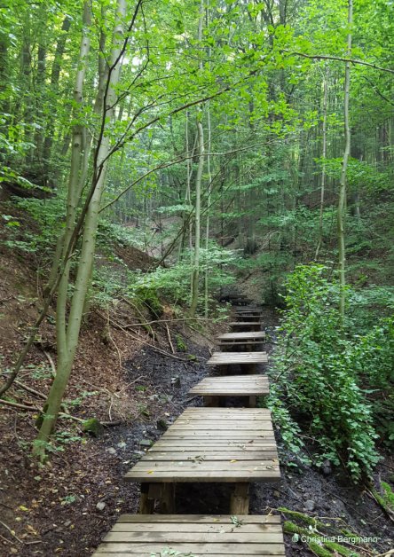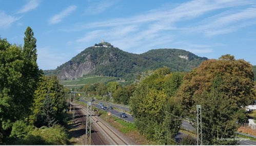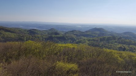 The Siebengebirge, or Seven Hills, is a mountain range next to the Rhine River, and of volcanic origin. The highest is the Ölberg (461 m, 1509 ft), so I guess I would not really speak of “mountains”. But they nevertheless make for a nice hike, especially if you start at the bottom and do not drive half way up.