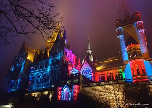 Have you ever been to a light show at a castle, at night? Well, this evening is your chance at Schloss Drachenburg. There is also next weekend, when the castle again will be lit in beautiful colors. If you miss it, just come back next year…